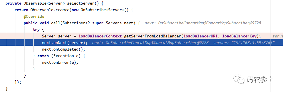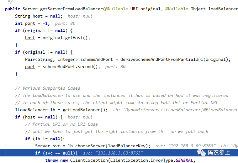 进入 LoadBalancerContext 的 getServerFromLoadBalancer 方法: