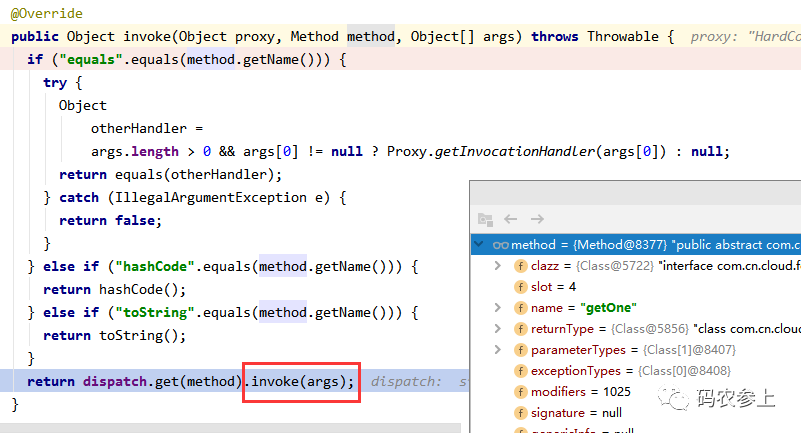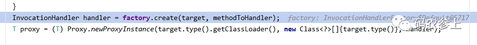 看到下面的 InvocationHandler 和 Proxy 就很清楚了,和我们在开头说的一样,这里是使用 JDK 动态代理的方式创建代理对象。创建 InvocationHandler 及代理对象过程: