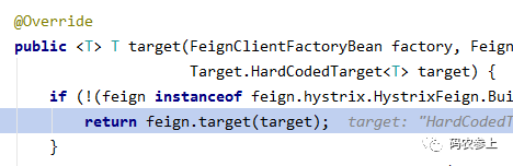 接着看上面 loadBalance 方法中,首先调用了 HystrixTargeter 的 target 方法: